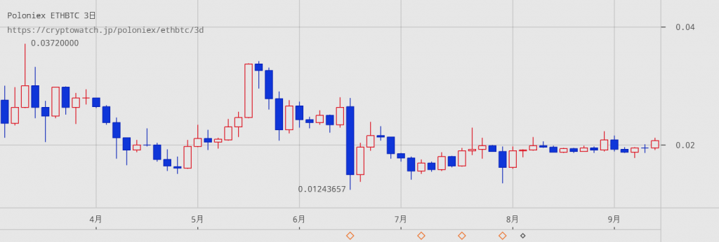 また暗号通貨はハッキング等の事件により大きく値動きが変動します。例えば悪名高いThe DAO事件発生時にはETHの価格が半分程度に暴落しました。私はThe DAO事件発生直前にBitMEXでETHロングの指値を入れておいたのですが、約定とほぼ同時にロスカット通知が届いたのは今では良い思い出です。資金を適切に管理していたおかげで、致命傷にはならずに済みました。