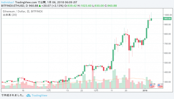 ETHの価格がAll Time Highである1023.6USDを記録しました(Bitfinex)。