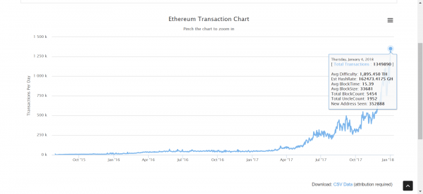 4日のトランザクション数は1,349,890を記録しており、秒間トランザクションが15を超えました。